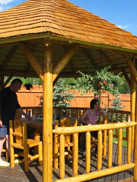 Elementele structurii sunt produse în atelier, impregnate si (sau) vopsite (cu lazur), apoi sunt asamblate pe fundatia dinainte pregatita pe locul de amplasare. Pavilioanele de dimensiuni mici (familiale) nu au în toate cazurile nevoie de fundatii, deoarece sunt produse împreuna cu ele (podiumul din lemn de stejar functioneaza si ca pardoseala pentru pavilion).